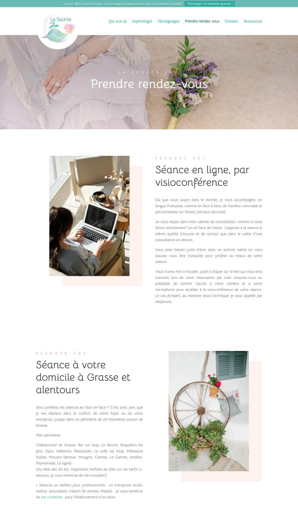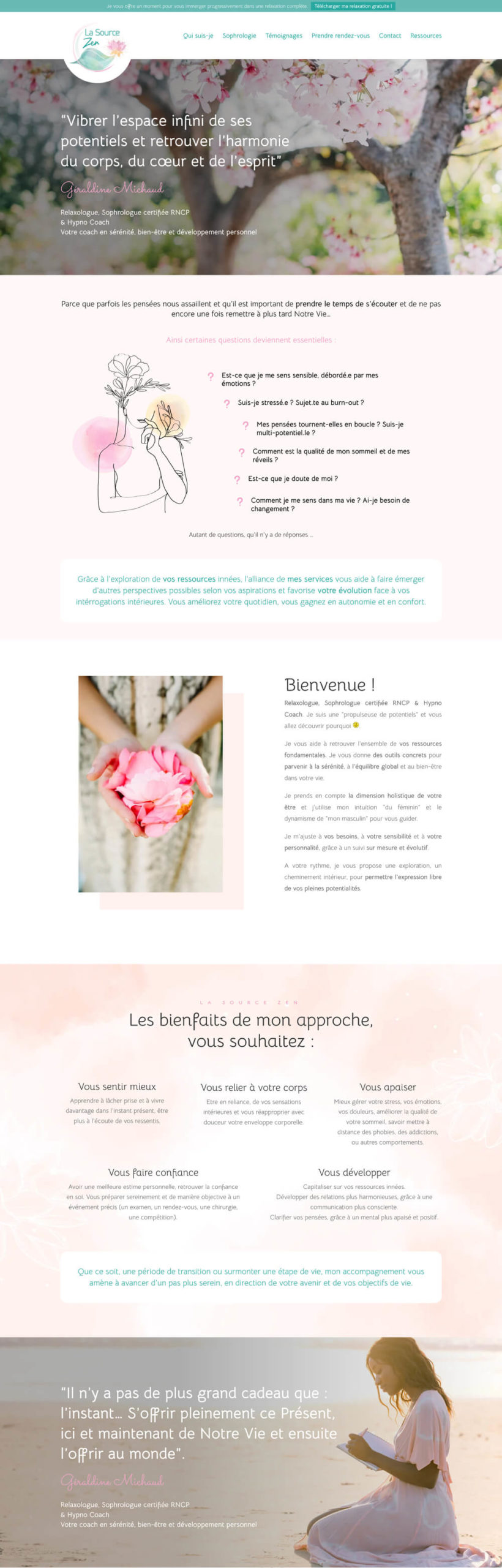 Nous avons ensuite créé le site, en lui donnant une ambiance douce et sereine, dans des couleurs pastels.