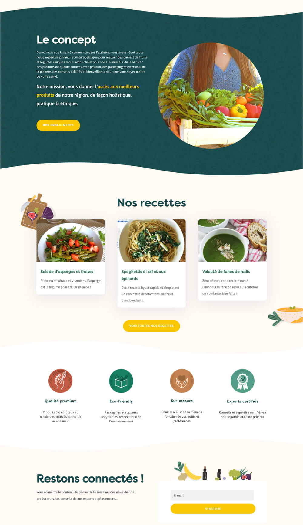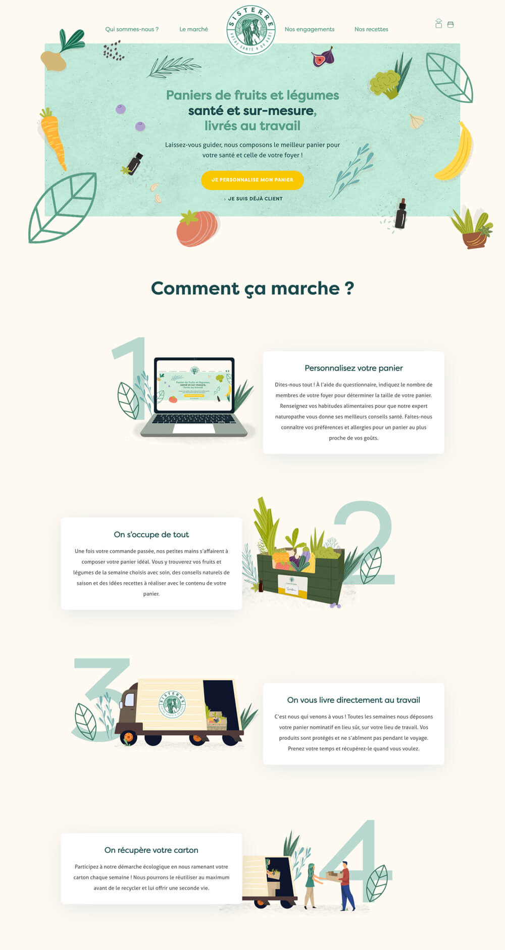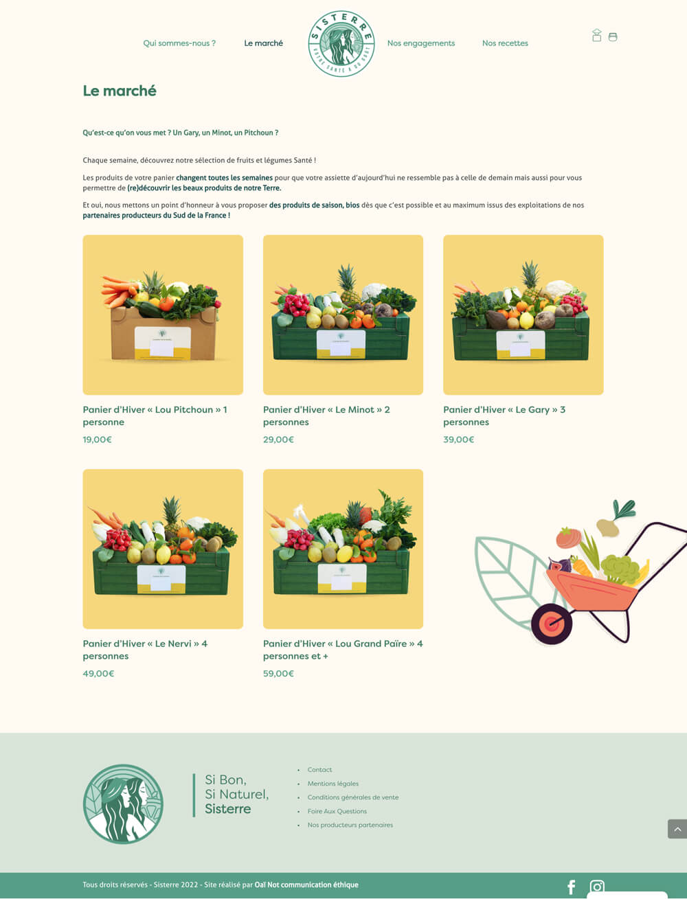 Audrey et Charlène ont fait appel à nos services pour les accompagner et les conseiller dans la création de leur site internet. Très attachées aux respect de la Terre, les sœurs Sisterre souhaitaient un site web qui propose des paniers de fruits et légumes locaux, associés à un service de personnalisation des paniers en fonction de certaines problématiques santé.